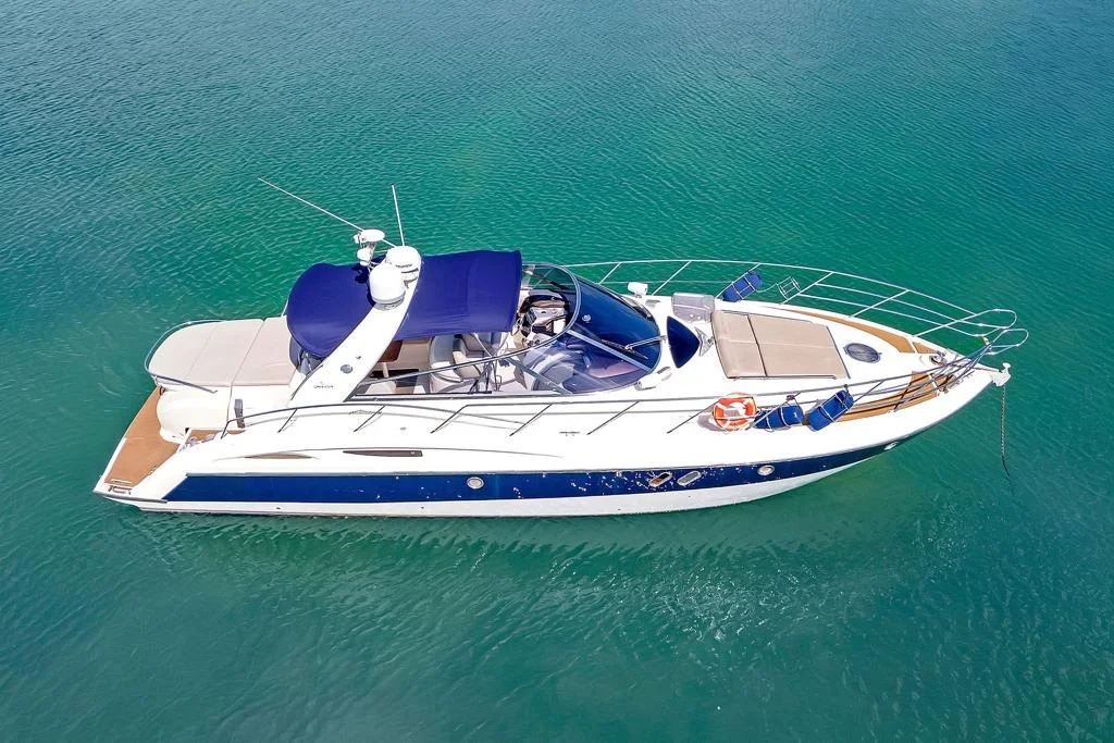 Experience the epitome of maritime elegance aboard our 50-foot Cranchi luxury boat. Crafted with a perfect blend of modern design and traditional allure, the Cranchi Master Yachts are a testament to impeccable craftsmanship. Featuring spacious decks, top-tier amenities, luxurious cabins, and fully equipped bathrooms. Its classic magnetism, rooted in well-designed and expertly produced features, ensures you'll embark on a seagoing adventure like no other. Our Cranchi luxury boat offers everything you need for an unforgettable voyage on Miami's pristine waters.