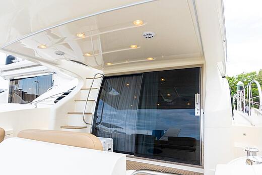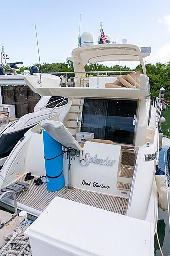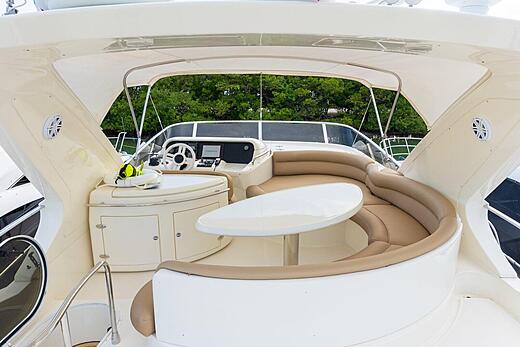 "Splendor" welcomes you with a spacious flybridge, the perfect place to socialize. Equipped with ample seating, a wet bar, and a grill, it's the ideal setting to enjoy sunset cocktails or simply relax under the sun. On the bow, a generous sunbathing area invites you to lay back and enjoy panoramic views of the city skyline.